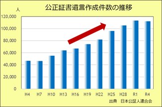 自筆証書遺言作成の統計はありませんが、2022年の遺言書検認件数は20,500件で、例年この程度の件数の自筆証書遺言が作成されているものと思われます。また、2022年の公正証書遺言作成件数は111,977件と過去2番目の件数で、コロナの影響を脱しつつあります。