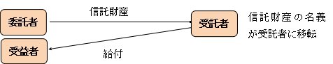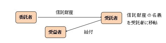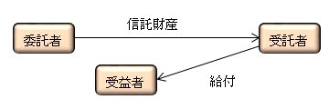 (1)「委託者(財産の所有者)」が「受託者」に対して、「信託財産」を「受益者」のために管理・運用し、「受益者」に給付することを託す制度。「委託者=受益者」の場合が多い。 (例:アパートオーナーが息子にアパートを管理・運用させて、生活費を受け取る。)